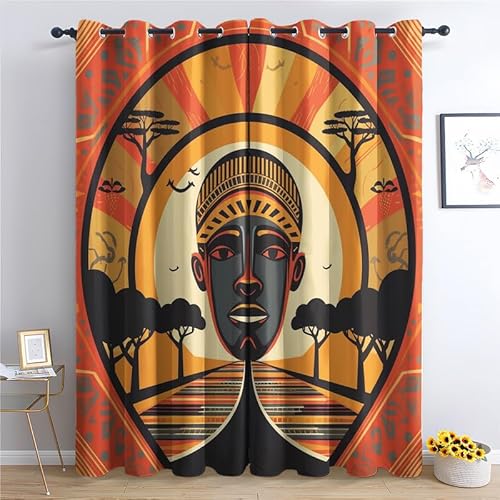 Rideau Occultant Tribu Africaine - Rideaux Isolant Thermiques à Oeillets 140x180, Motif Boho Ethnique - Rideaux Salon Chambre Fenetre - Rideau Opaque - Lot de 2 Rideaux et Draperies Intérieurs