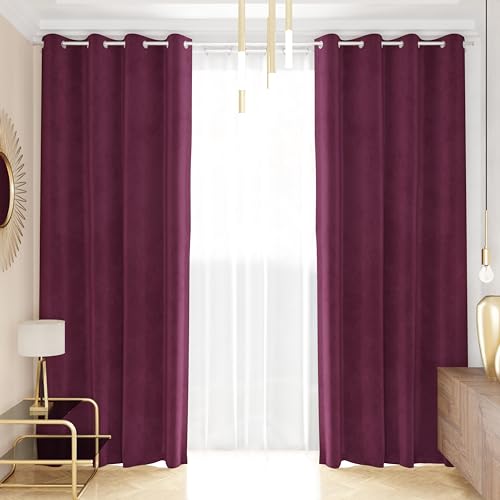 PETTI Artigiani Italiani - Rideaux en Velours à Panneaux pour intérieur avec Anneaux, 2 pièces, 140 x 280 cm, Rideau Velours Chambre à Coucher et Salon occultants isolants et Modernes, Prune, 100%