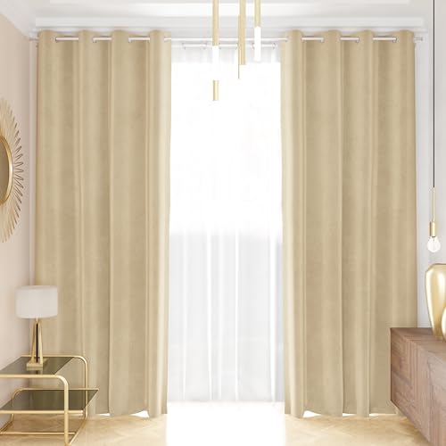 DONREN Lot de 2 Rideaux occultants et Thermo-isolants avec Passe-Tringle, Beige crème, pour Chambre/Salon, 213 cm de Long, 107 x 213 cm