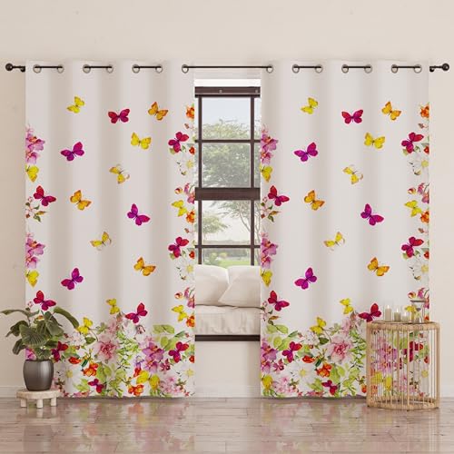 PETTI Artigiani Italiani - Rideaux à Panneaux pour intérieur avec Anneaux, 2 pièces, 140 x 280 cm, Rideau de Chambre à Coucher et Salon occultants isolants et Modernes, Papillons, 100% fabriqué en