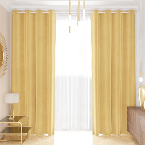 DUALIFE Lot de 2 rideaux isolants thermiques occultants et obscurcissants à œillets sur la partie supérieure, unis, pour chambre à coucher et salon, 160 x 107 cm (L x l), jaune doré