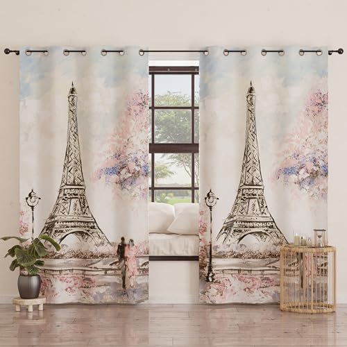 PETTI Artigiani Italiani - Rideaux à Panneaux pour intérieur avec Anneaux, 2 pièces, 140 x 280 cm, Rideau de Chambre à Coucher et Salon occultants isolants et Modernes, Paris, 100% fabriqué en Italie