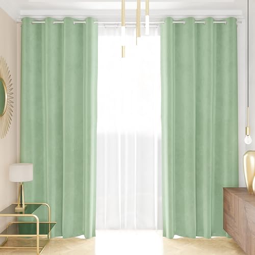 DUALIFE Lot de 2 Rideaux isolants Thermiques occultants et obscurcissants à œillets pour Chambre à Coucher, 243 x 152 cm (L x l), Vert Sauge