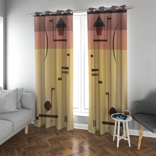 Générique Rideau Occultant Mondrian, Rideaux Motif Géométrique Abstrait, Rideau Thermique Isolant à Oeillets, Rideaux Fenetre Imprimé pour Salon Chambre Décoration, Lot de 2, 75x166 cm HZC02