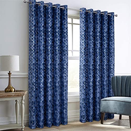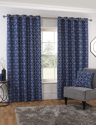 Sundour Kelso Paire de Rideaux à œillets entièrement doublés Motif géométrique Bleu Marine 117 x 137 cm
