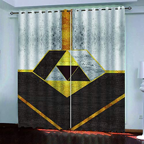 Rideaux pour enfants, motif géométrique rétro 3D imprimé fil doré, œillets, occultants, thermiques et isolants, pour chambre/salon, 2 panneaux 140 x 157 cm (55 x 62 pouces), ensemble de rideaux pour g