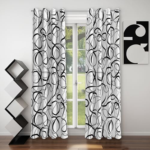 tubeamin Lot de 2 Rideaux occultants à Motif géométrique Noir Gris Blanc avec Lignes abstraites et Motif Art Moderne bloquant la Chaleur pour Salon, Chambre à Coucher, 132 x 243 cm
