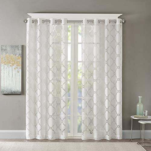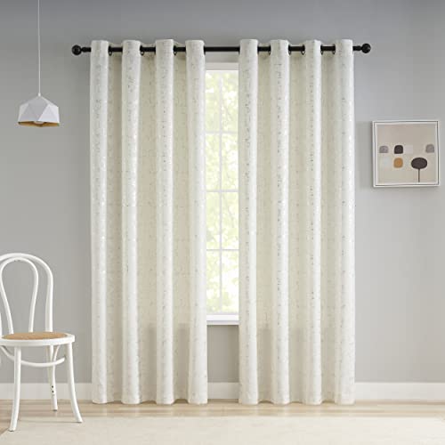 Madison Park Eden Rideaux Transparents pour Chambre à Coucher, Moderne, Contemporain, clairsemés pour Salon, Motif géométrique avec œillets, 127 x 213,4 cm, Ivoire