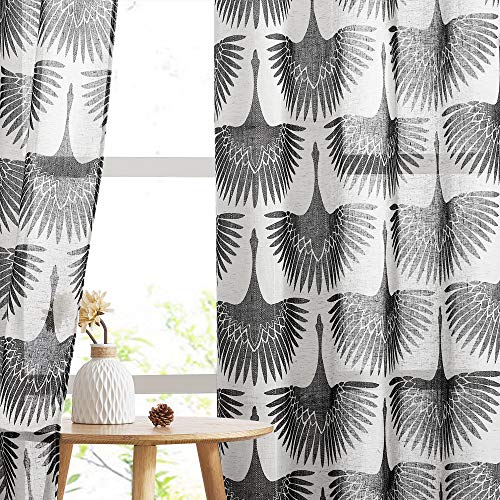 KGORGE Lot de 2 Rideaux Transparents à Motif géométrique – Rideaux de fenêtre en Lin Naturel Doux et lavables, filtrant la lumière, pour Chambre à Coucher, Chambre d'enfant, Ferme, Noir, 127 x 160 cm
