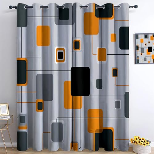 HNYDM Rideaux géométriques Orange et Jaune, Rideaux à Motifs géométriques Audacieux, Panneaux de fenêtre Modernes et Lumineux pour Salon et Chambre (LxH/2x160x184cm)