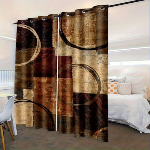 IKDZCM Ensemble de Rideaux occultants imprimés à Carreaux Marron rétro et Motifs géométriques futuristes, idéal pour la décoration du Salon et de la Chambre (L x H / 2 x 100 x 130 cm)
