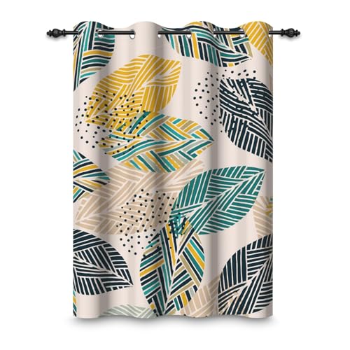 ggaimwf 107x160cm Rideau à œillets Motif Feuilles abstraites Plantes Points Géométriques Motifs Thermiques Oeillets Occultants Rideaux pour fenêtres Salon Chambre Bureau à Domicile,1 Panneau Simple