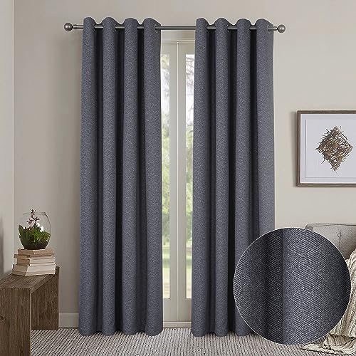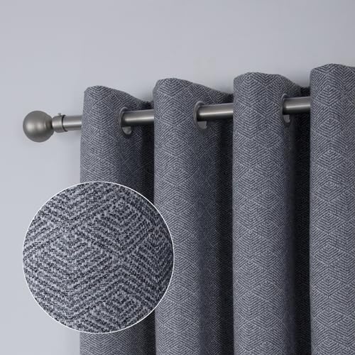 always4u 100% Occultant Rideau avec Motifs Géométriques, Faux Laine Double Rideaux Isolation Thermique avec Oeillets pour Chambre à Coucher Salon, L140xH245cm, Texturé, Gris, Lot de 2