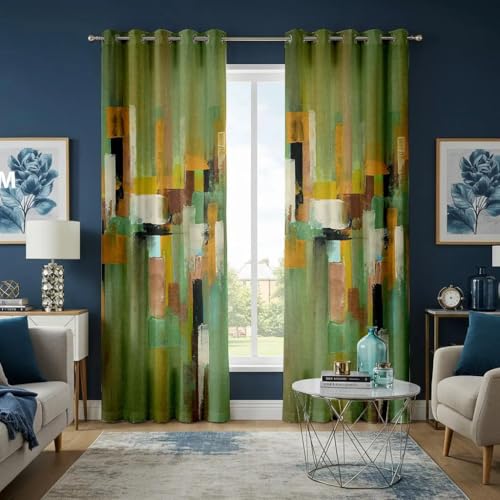 HNYDM Rideaux occultants Modernes Abstraits Verts, Panneaux de fenêtre géométriques à Motifs de Coups de Pinceau pour Salon ou Chambre (LxH/2x100x215cm)