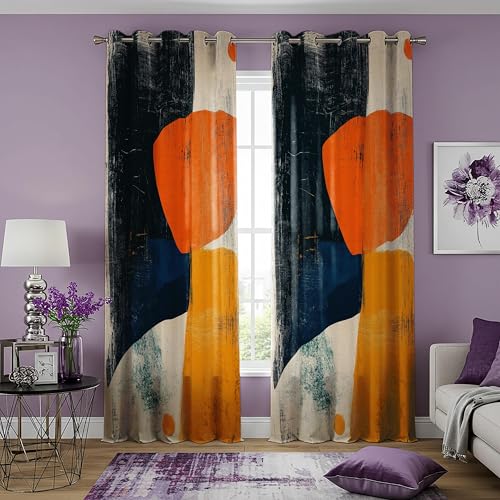 HNYDM Rideaux occultants Abstraits Modernes, Motifs géométriques Orange et Marine Audacieux pour Salon ou Chambre (LxH/2x58x100cm)