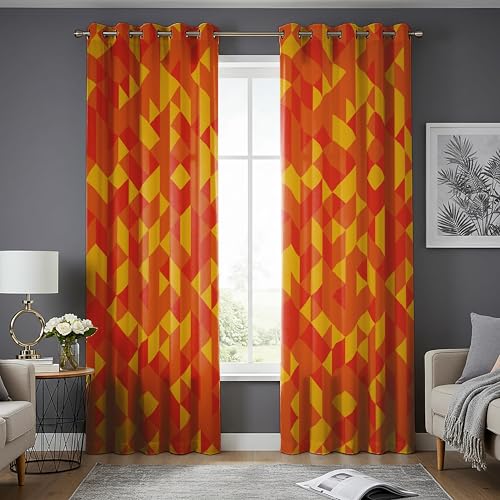 HNYDM Rideaux géométriques Orange et Jaunes, Rideaux à Motifs géométriques Audacieux, Panneaux de fenêtre Modernes et Lumineux pour Salon et Chambre (LxH/2x107x220cm)