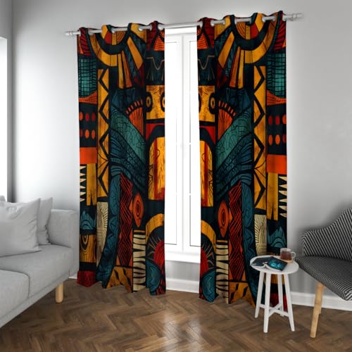 CHERHERART Rideaux occultants Tribaux africains Motifs géométriques Audacieux Rideaux de fenêtres de Salon Plateau d’œillet Ensemble de 2 Panneaux pour l’étude de Bureau 2xB140xH175