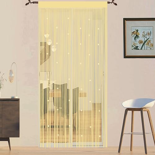 2 Pièces Rideau de Fil, 100 X 200 cm Clignotant Rideau Perle, Beige Jaune Rideaux Anti Mouche Porte Entrée, Séparation de Pièce, Convient pour Mariages, Cafés, Restaurants, Portes et Fenêtres