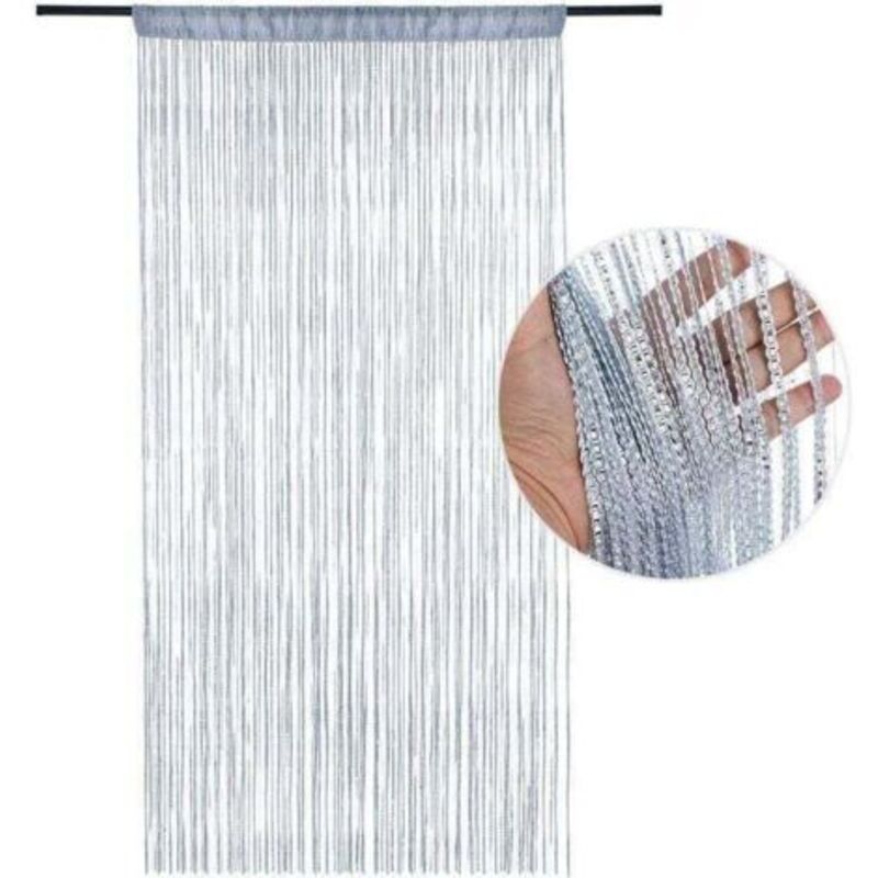 Rideau avec Chaînes en Aluminium argenté, Rideau de Porte Panneau Anti Mouche Moustiquaire Pailleté Fil Rideaux Décoration Mural Fenêtre Porte Salle de Frange 90 x 210 cm