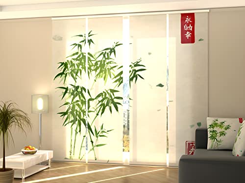 Wellmira Rideaux à panneaux coulissants Aquarelle de bambou vert japonais Lot de 4 (Kit de montage au plafond (rail et chariots de fixation), 4x60x270 cm)