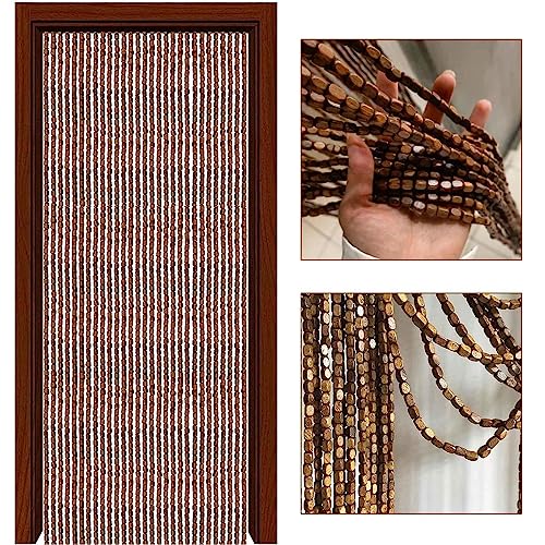Jolan Rideaux De Porte en Perles,Rideau De Porte Perles Bois Naturel,Panneaux De Séparation De Décoration,Rideaux Anti Mouche Suspendue,Rideaux en Perles Brins Faits À La Main,W×H-35strands(70×200cm)
