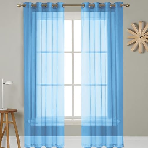 Mesnt Rideaux Voilages pour Chambres, Rideau Transparent Semi-Transparent dégradé Décoration Élégante de Dressing Salon Chambre Salle à Manger, Bleu, 229 x 107 cm (HxL)