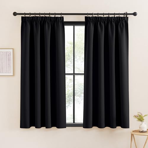 KGORGE Rideau Occultant Court - Rideaux Cuisine de Petite Fenetre, Galon Fronceur, Opaque Draperies Intérieurs Decoration pour Dressing Placard Maison Chambre, 140x145 cm, Noir, Lot de 2