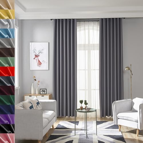 GAIFNAG Rideau Occultant - Rideau 100 x 220 cm Opaque à Oeillets Isolation Lumiere Anti UV Decoration Thermique Fenêtre Rideaux & Rideaux pour Porte Fenetre Dressing Salon, Gris Foncé