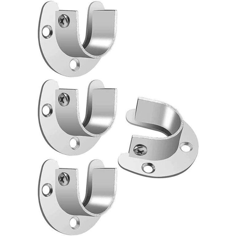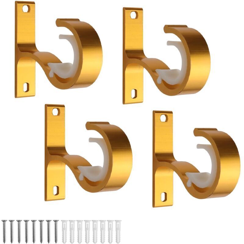 4 Pcs Support de Tringle à Rideaux Douilles en Forme de u Support Tringle Penderie Extrémité de Tige de Penderie pour Rideau ou Armoire, Brillant en