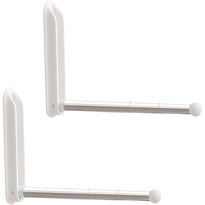 2 Fixation Murale Pliable Cintres, à Rideaux Télescopique Sans Perçage pour Vêtements Crochets Rangement Chambre Salle Bain, fenêtre, penderie(blanc)