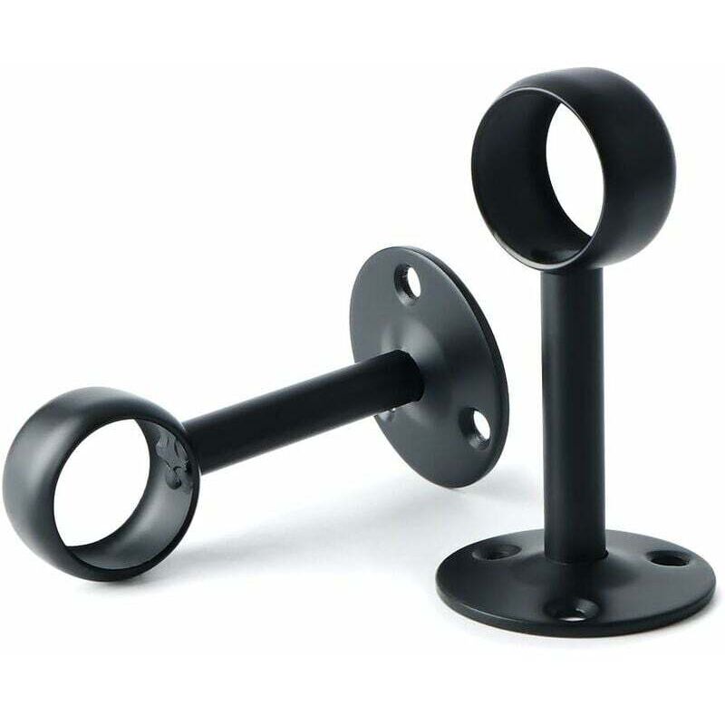 Support de Tringle à Rideaux Support Tringle Penderie avec Vis Support Tringle pour Armoire, en Acier Inoxydable Finition Noire, Diamètre 26 mm, 4 Pcs