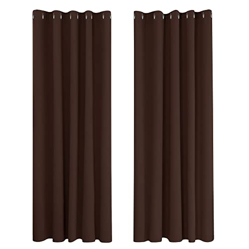 Deconovo Rideaux Occultants Isolant Thermique Anti Froid, Design Moderne à Oeillets, Rideaux pour Chambre Garçon, 168x229 CM (Largeur x Hauteur), Chocolat, 2 Pièces