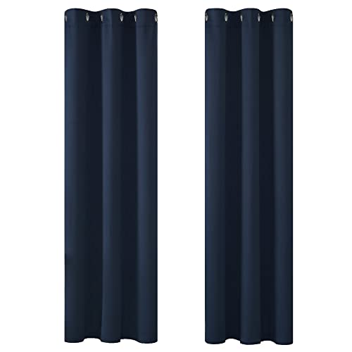 Deconovo Rideaux Occultants Isolant Thermique Anti Froid, Design Moderne à Oeillets, Rideaux pour Salon et Chambre, 117x183 CM (Largeur x Hauteur), Bleu Marine, 2 Pièces