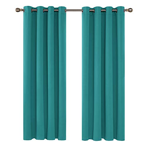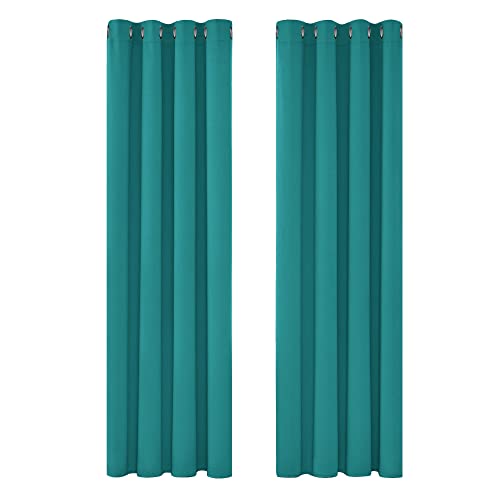 Deconovo Rideaux Occultants Isolant Thermique Anti Froid, Design Moderne à Oeillets, Rideaux pour Salon et Chambre, 117x183 CM (Largeur x Hauteur), Turquoise, 2 Pièces