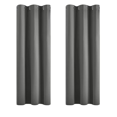Deconovo Rideaux Occultants Isolant Thermique Anti Froid, Design Moderne à Oeillets, Rideaux pour Salon et Chambre, 140x220 CM (Largeur x Hauteur), Gris Foncé, 2 Pièces
