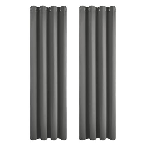 Deconovo Rideaux Occultants Isolant Thermique Anti Froid, Rideaux pour Salon et Chambre, Design Moderne à Oeillets, 140x200 CM (Largeur x Hauteur), Gris Foncé, 2 Pièces