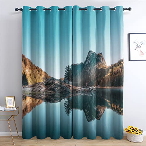 Rideau Occultant Paysage - Lot de 2 Rideaux Thermiques Isolants Anti Froid Imprimé pour Salon Chambre Fenetre Cuisine, Rideaux et Draperies Intérieurs à Oeillets, 110x215 cm (LxH)