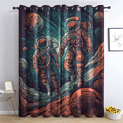 Rideau Occultant Astronaute Planète - Lot de 2 Rideaux Thermiques Isolants Anti Froid Imprimé pour Salon Chambre Fenetre, Rideaux et Draperies Intérieurs à Oeillets, 110x215 cm (LxH)
