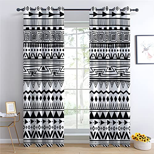 Rideau Occultant Tribal Noir et Blanc - Lot de 2 Rideaux Thermiques Isolants Anti Froid Imprimé pour Salon Chambre Fenetre, Rideaux et Draperies Intérieurs à Oeillets, 140x220 cm (LxH)