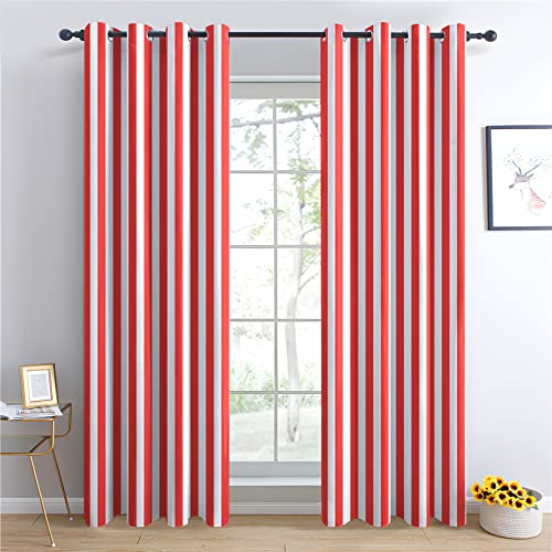 Rideau Occultant Rayures Rouge et Blanc - Lot de 2 Rideaux Thermiques Isolants Anti Froid Imprimé pour Salon Chambre Fenetre, Rideaux et Draperies Intérieurs à Oeillets, 110x215 cm (LxH)