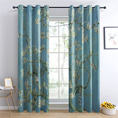 Rideau Occultant Fleur d'amandier de Van Gogh - Lot de 2 Rideaux Thermiques Isolants Anti Froid Imprimé pour Salon Chambre Fenetre, Rideaux et Draperies Intérieurs à Oeillets, 140x180 cm (LxH)