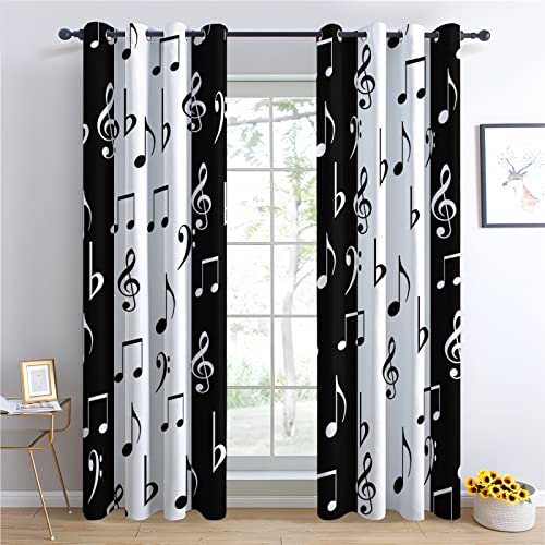 Rideau Occultant Note de Musique Noir et Blanc - Lot de 2 Rideaux Thermiques Isolants Anti Froid Imprimé pour Salon Chambre Fenetre, Rideaux et Draperies Intérieurs à Oeillets, 110x215 cm (LxH)