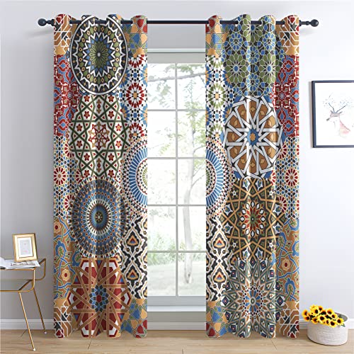 Rideau Occultant Mandala - Lot de 2 Rideaux Thermiques Isolants Anti Froid Imprimé pour Salon Chambre Fenetre Cuisine, Rideaux et Draperies Intérieurs à Oeillets, 117x137 cm (LxH)