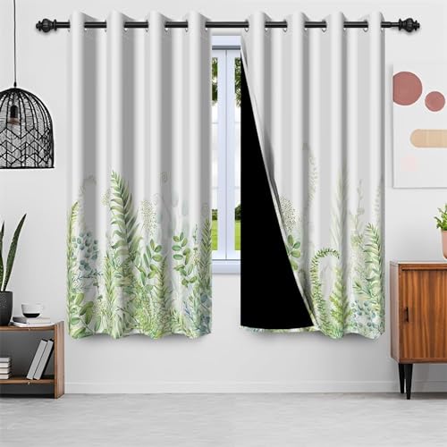 Uiiooazy Rideaux Occultant Eucalyptus, Rideaux Occultant Feuilles Vert Sauge Motif Rideau Thermiques Isolants Anti Froid Rideau à Oeillets pour Chambre Cuisine Salon Fenêtre, Lot de 2, 140Lx145Hcm