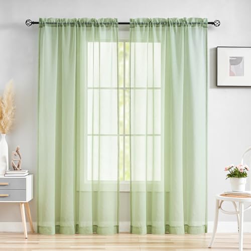MYSTIC-HOME Rideaux Transparents Vert Sauge 213,4 cm de Long, Rideaux Transparents avec Passe-Tringle 2 Panneaux, traitements de fenêtre en Voile Semi-froissé Vert Sauge, 52" Lx84 L