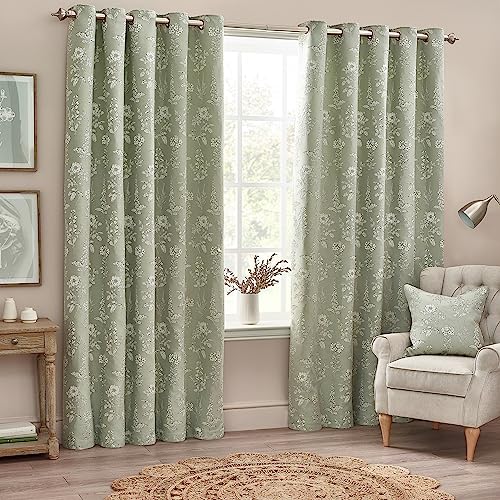 Générique Rideau Occultant Fleurs et Oiseaux, Rideaux Motif Floral Vert Sauge, Rideau Thermique Isolant à Oeillets, Rideaux Fenetre Imprimé pour Salon Chambre Décoration, Lot de 2, 140x220 cm Bsy37