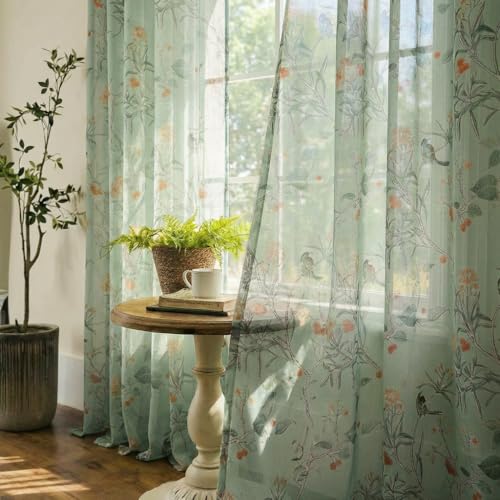 YJ Yanjun Lot de 2 Rideaux Transparents Vert Sauge de 183 cm de Long avec Motif Floral bohème pour Chambre à Coucher, Porte-fenêtre, Porte coulissante de 1,8 m de Long