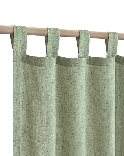 Lajode Lot de 2 rideaux occultants vert sauge pour chambre à coucher – Rideaux en lin à isolation thermique en toile de jute pour sous-sol, ferme, chambre d'enfant, chambre d'enfant, 132,1 cm chacun
