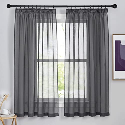 PONY DANCE Rideaux Voilage Gris Foncé - Lot de 2 Voilage Transparent Voile en Effet Lin Texturé Décoration de Fenêtre avec Oeillet pour Cuisine Chambre, Chaque Panneau: L132xH158cm
