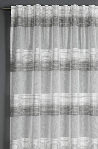 MRTREES 2 Pièces de Rideaux Voilage Blanc et Gris Noir 140x245 cm Fils Teints Rayé à Oeillets Rideau CuisineTamisant Élégant pour Porte-Fenêtre Décoration de Salon Chambre Baie Vitrée